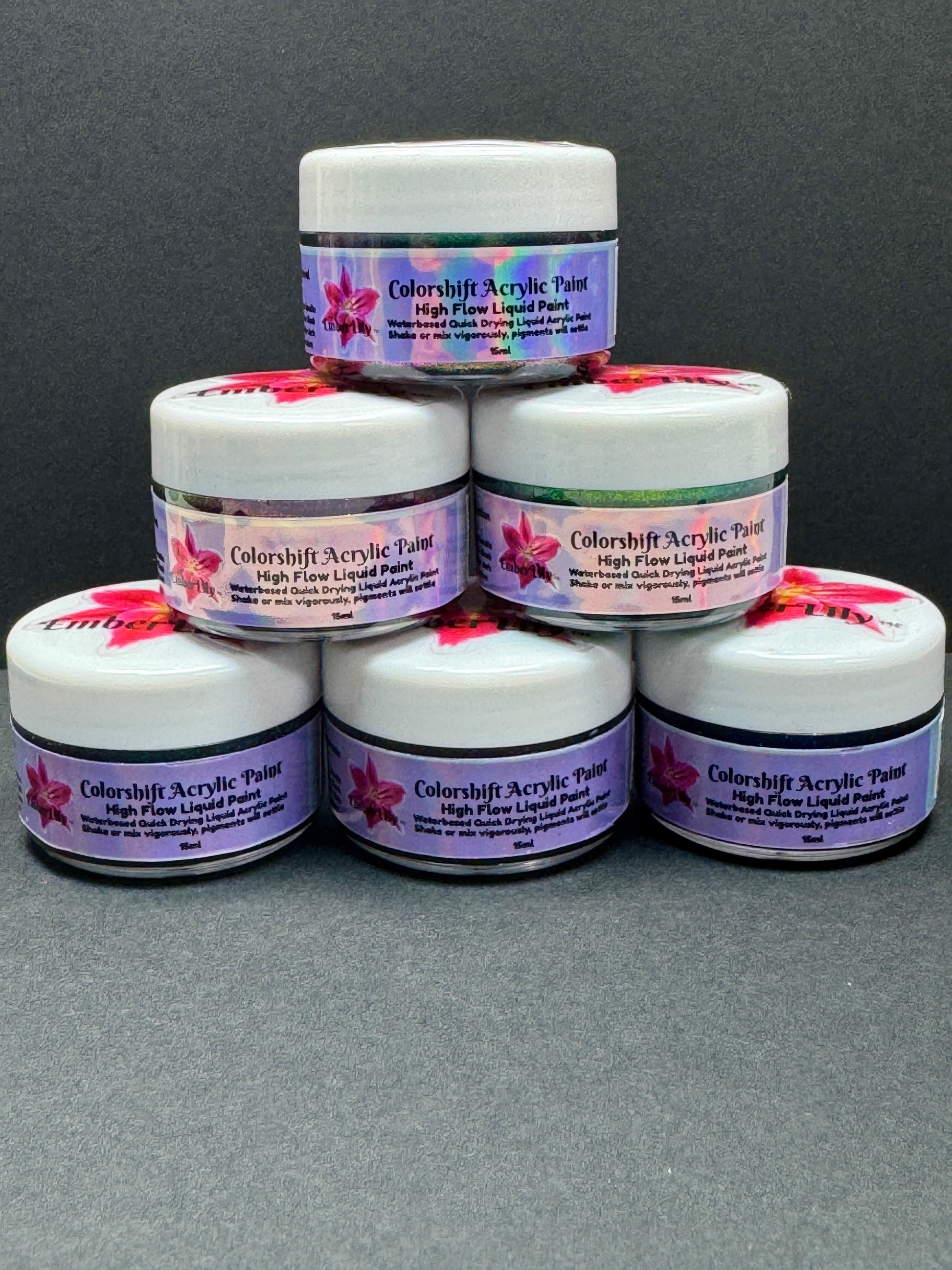 Elevate your artwork with EmberLily Colorshift Acrylic Paints – professional-quality, high-flow acrylic paints formulated with premium light-reactive colorshifting pigments. Each color transforms under the light, revealing a kaleidoscope of shifting hues that feel almost magical.