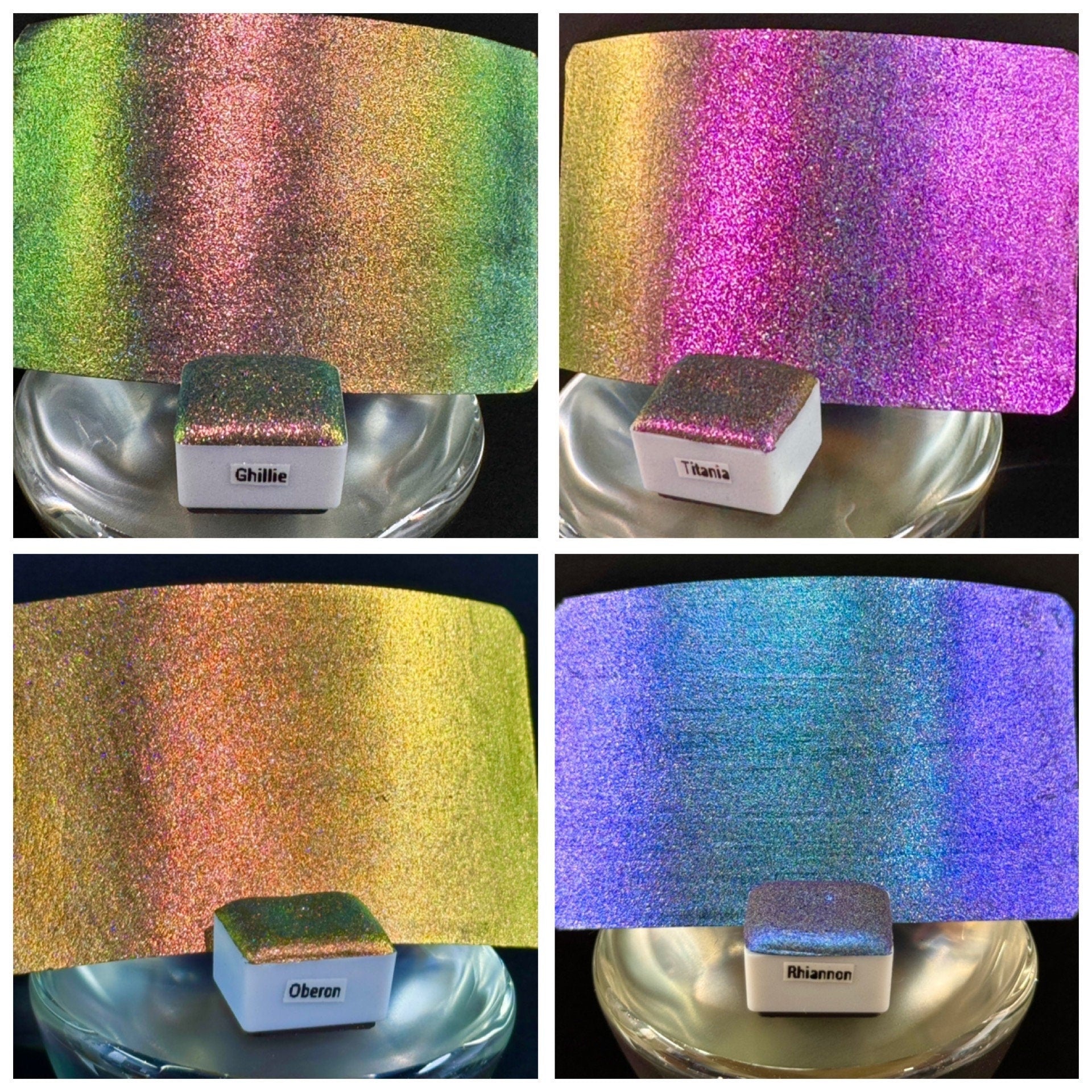 Fairy Ring, Vivid Colorshift Chrome Holographic Supershifter Watercolor Paints - Set of 8 prismatic hypershift chameleon metallic holo paint