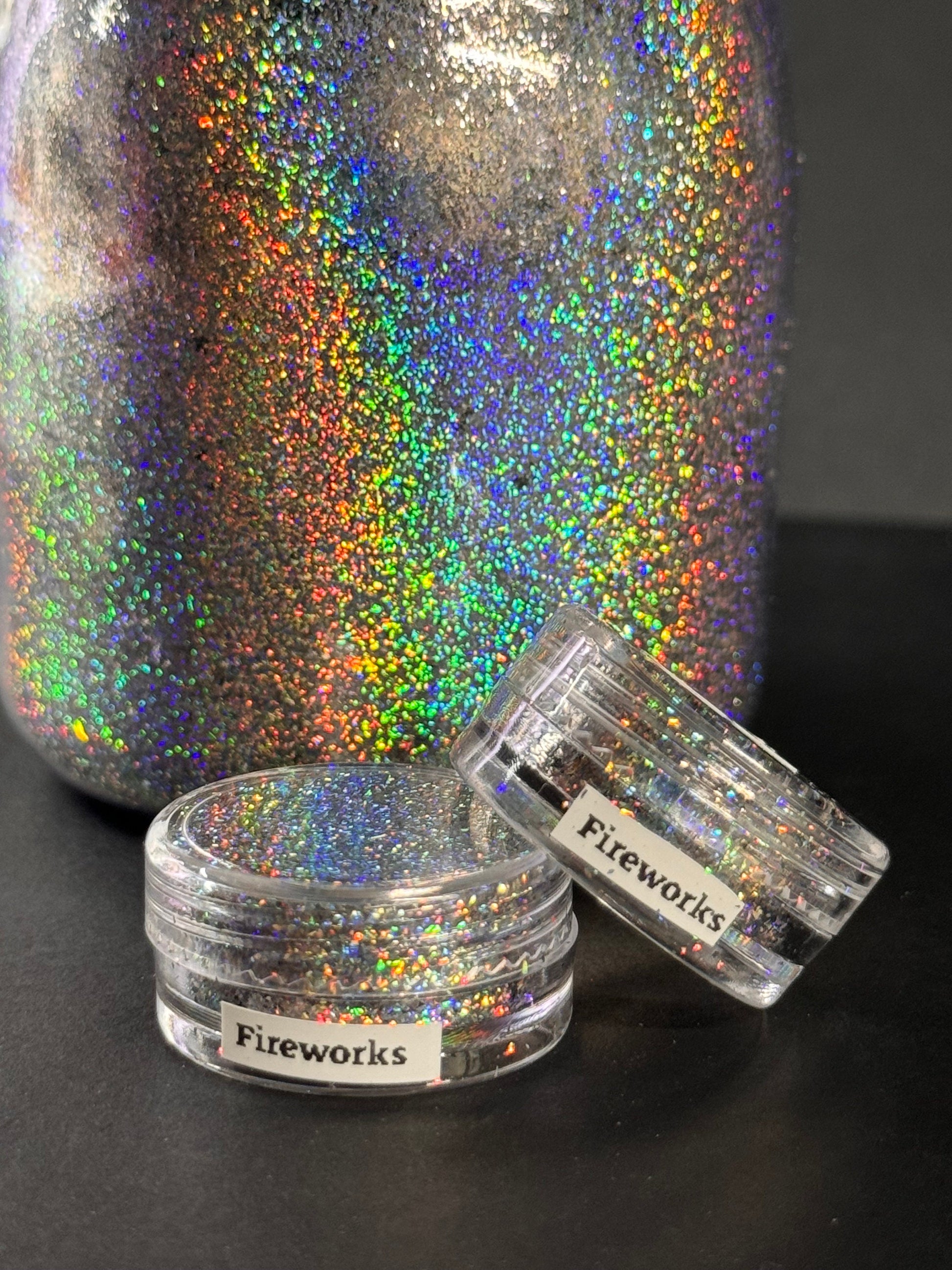 Fireworks PIGMENT is a Prismatic explosion of Extreme Holographic micro-flake Intense Metallic Shimmer and Kaleidoscopic Sparkle!!!