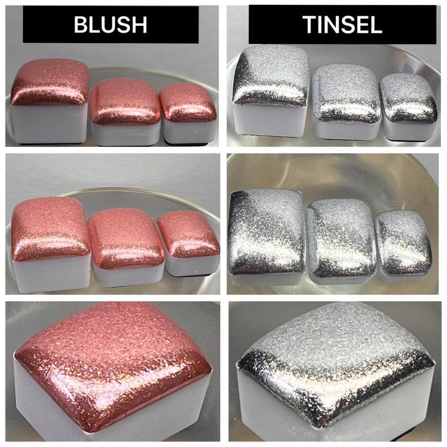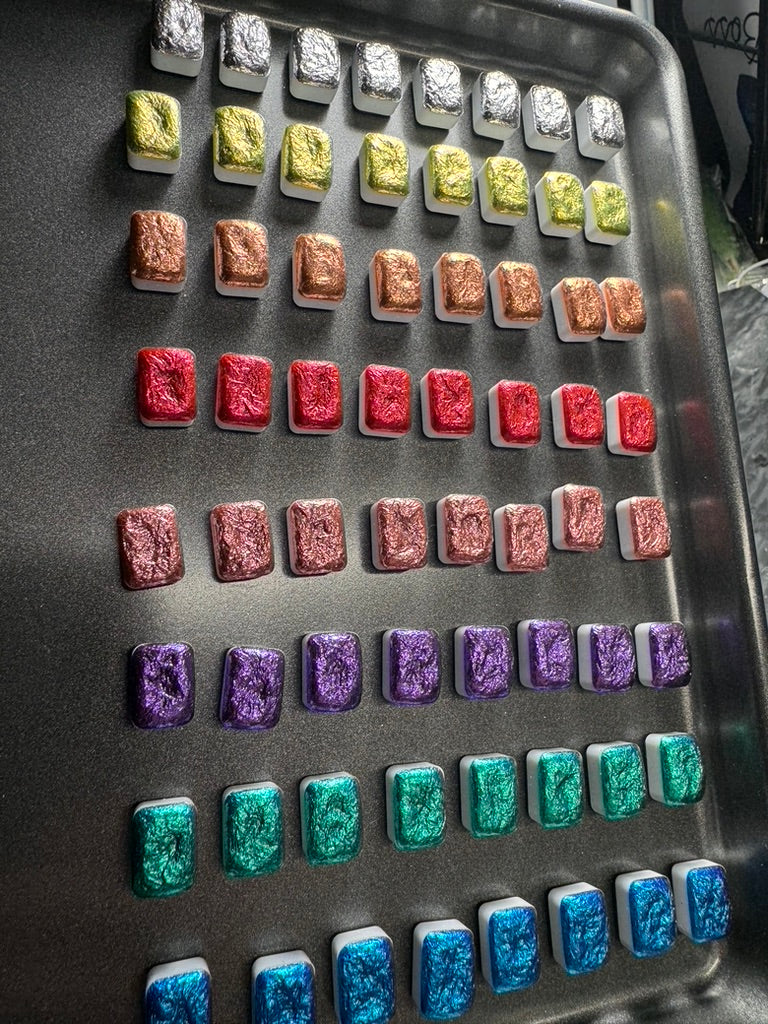 During the mixing and muling process of these handmade artisan watercolors, there can be minor imperfections such as bubbles or cracks. These are part of the process, however, it does not hinder the artisan quality or use of the product. We do try to remove any bubbles we see before and during the layer drying process but some small bubbles may appear after the drying has occured, which is why we overfill our pans with a pillowtop. You will always get more paint than the pans actually hold.