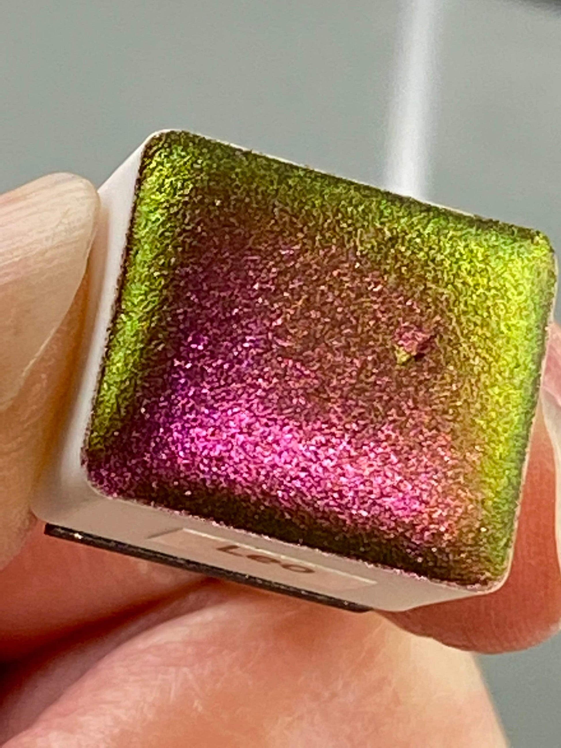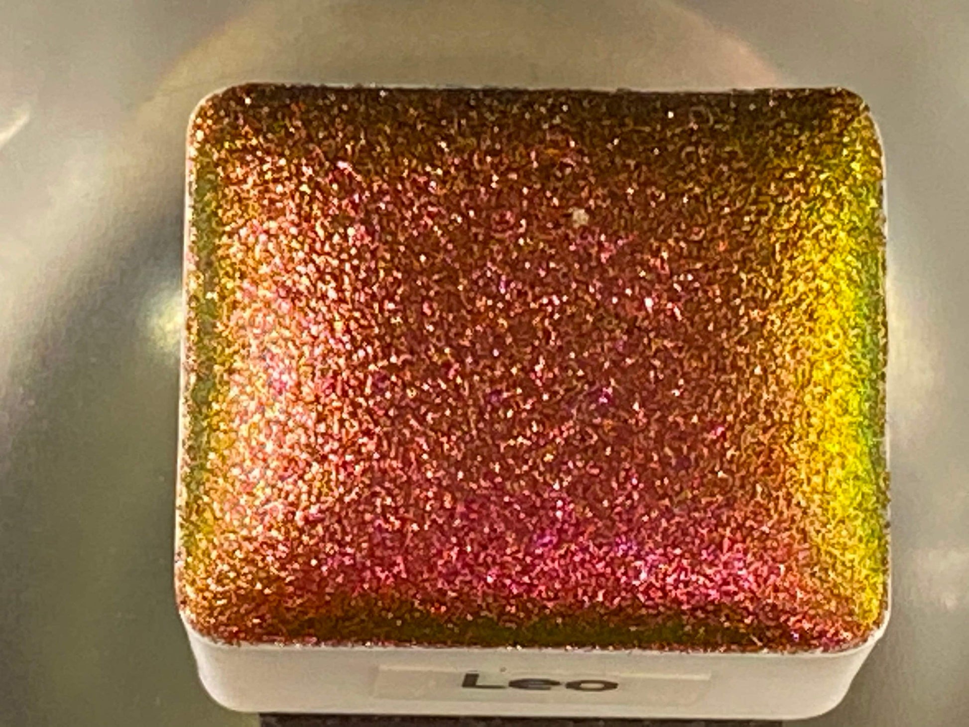 - 1 individual pan of "Leo" Colorshift Chameleon Chrome Watercolor