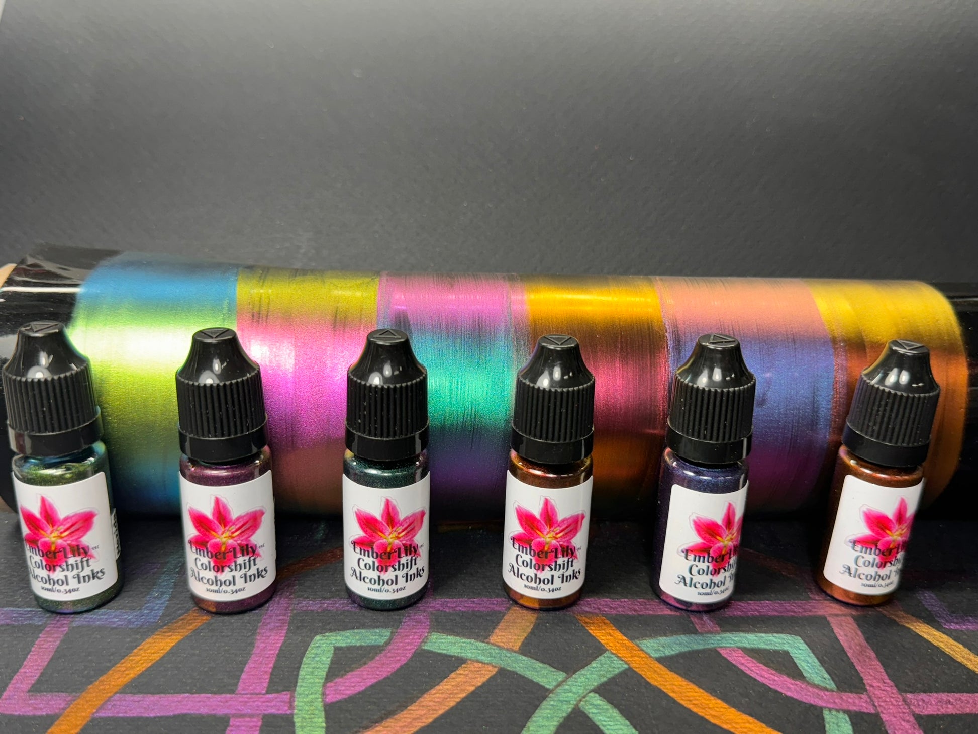 Each set has 6 different colorshift hypershift chrome alcohol inks.