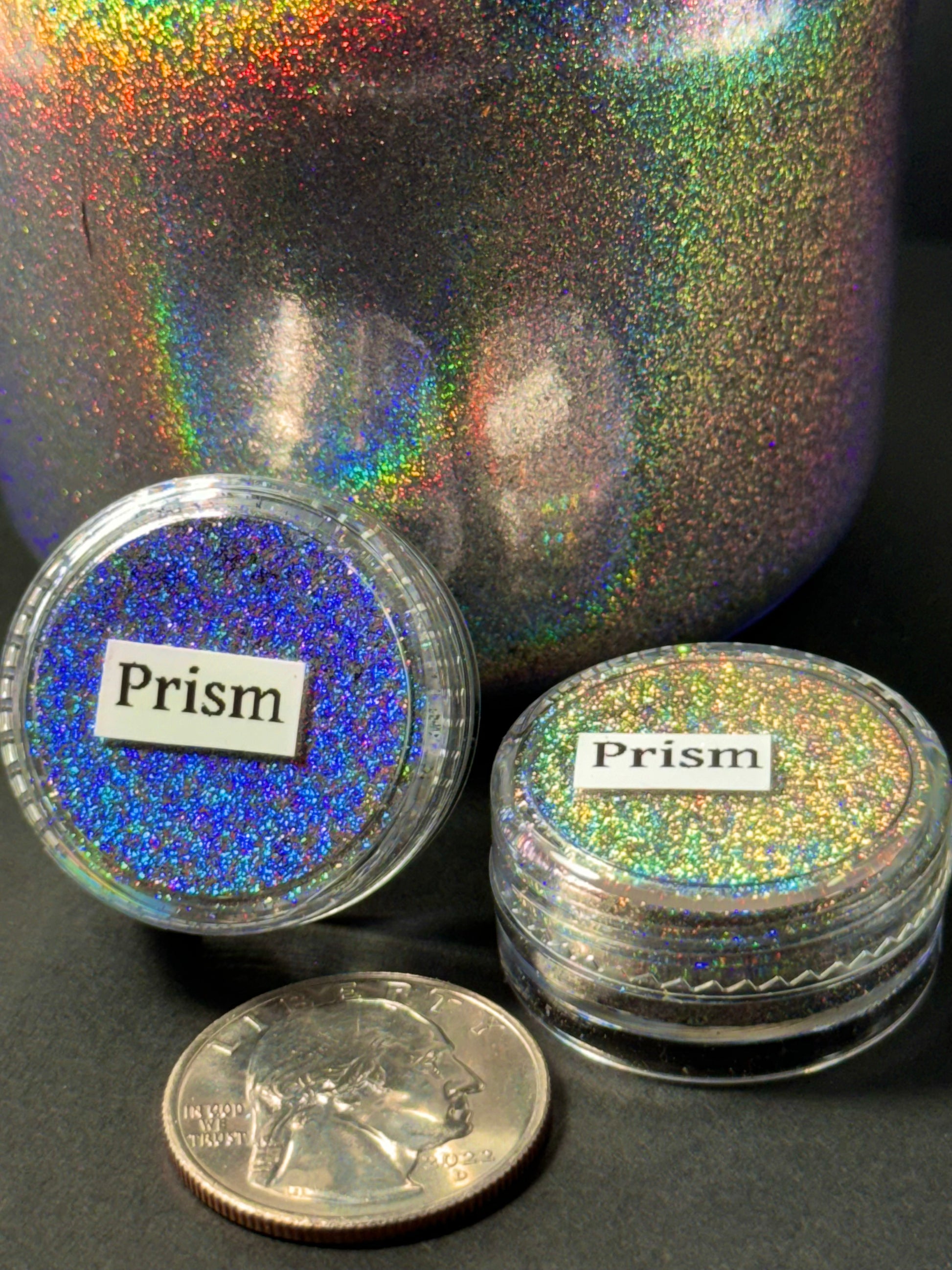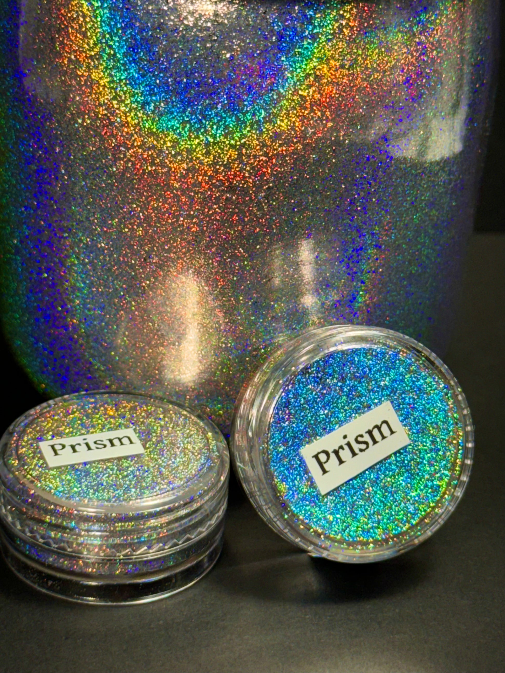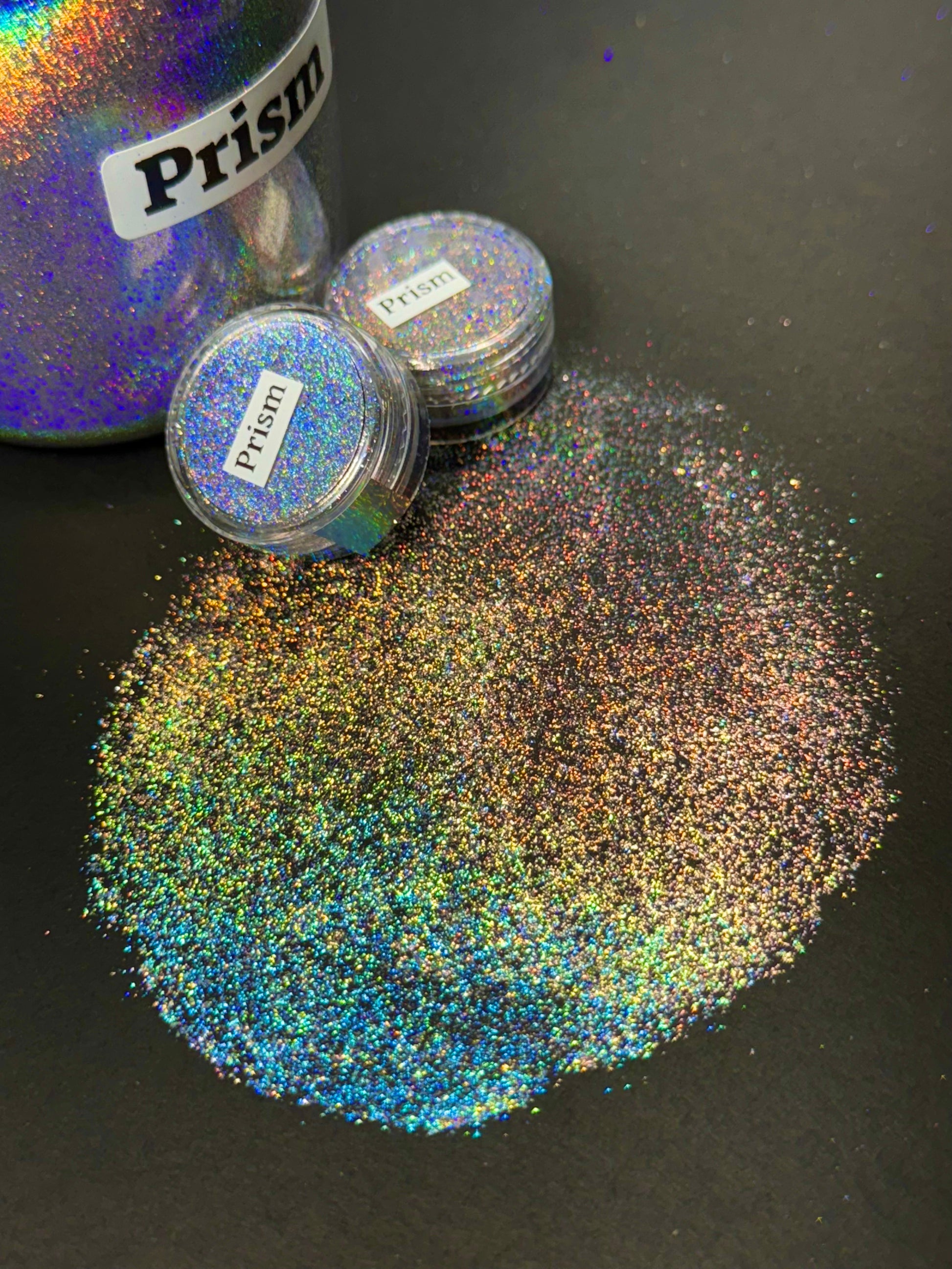 Prism PIGMENT is a Kaleidoscopic Explosion of Extreme Holographic ultramicro-flake powder with an Intense Metallic Shimmer and Sparkle