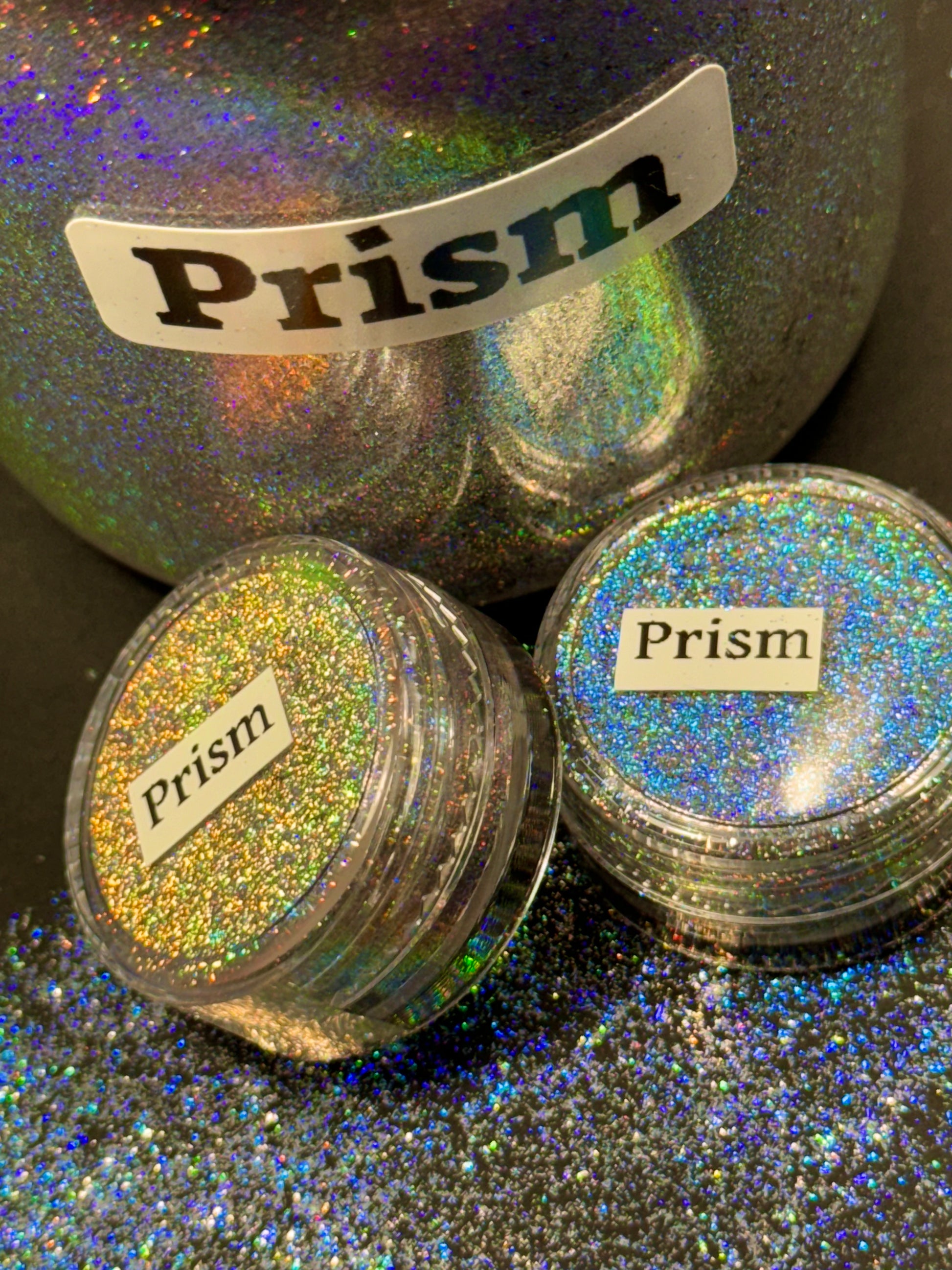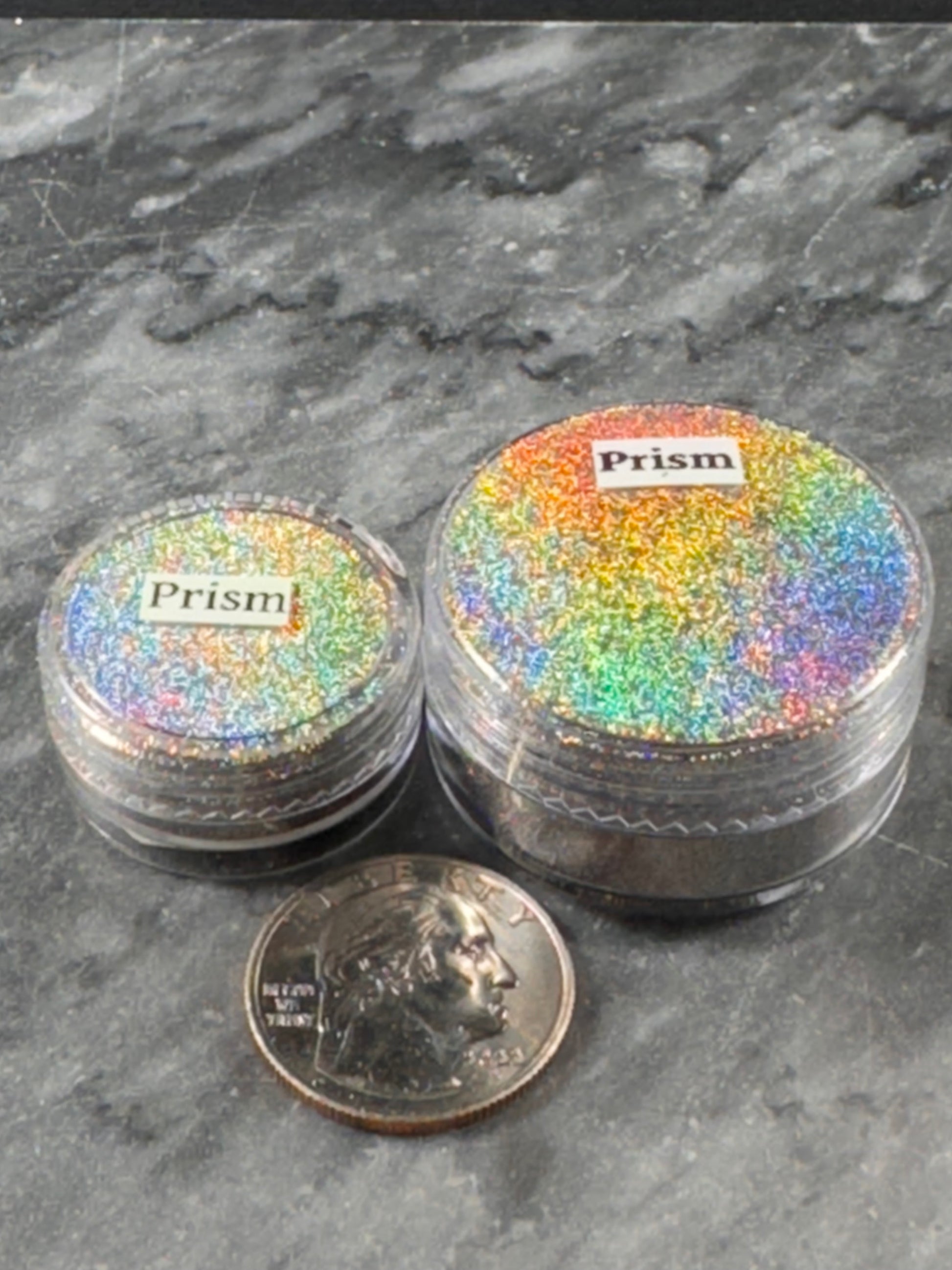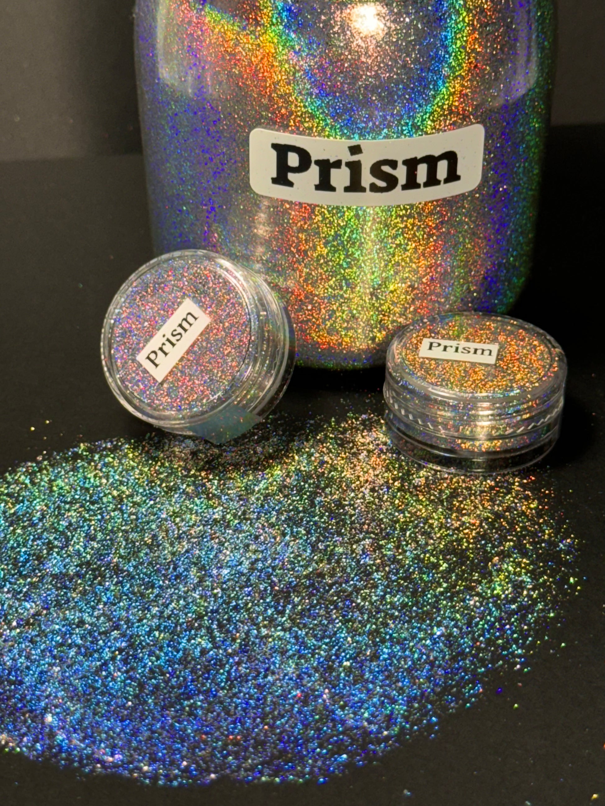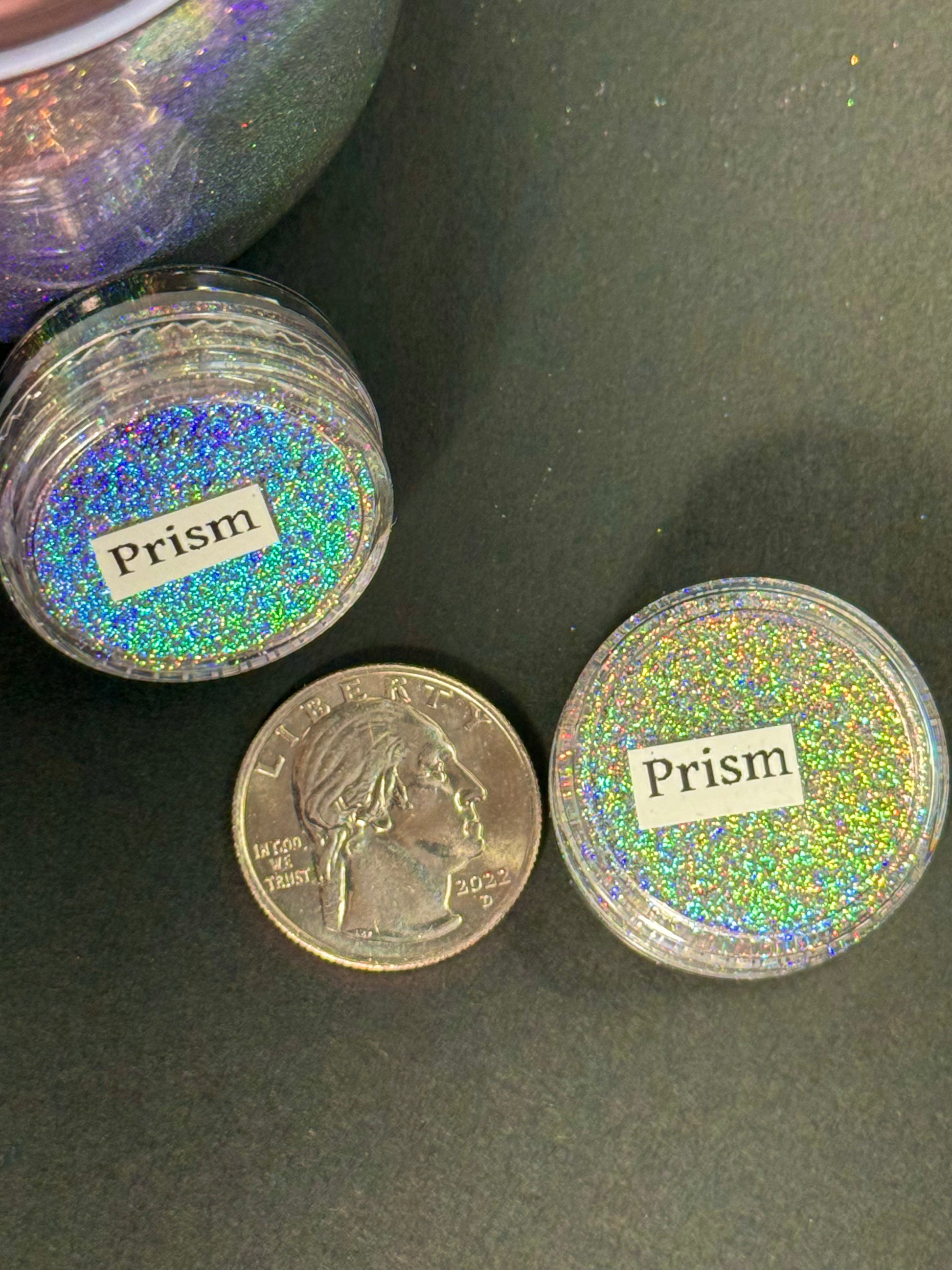 Prism PIGMENT is a Kaleidoscopic Explosion of Extreme Holographic ultramicro-flake powder with an Intense Metallic Shimmer and Sparkle