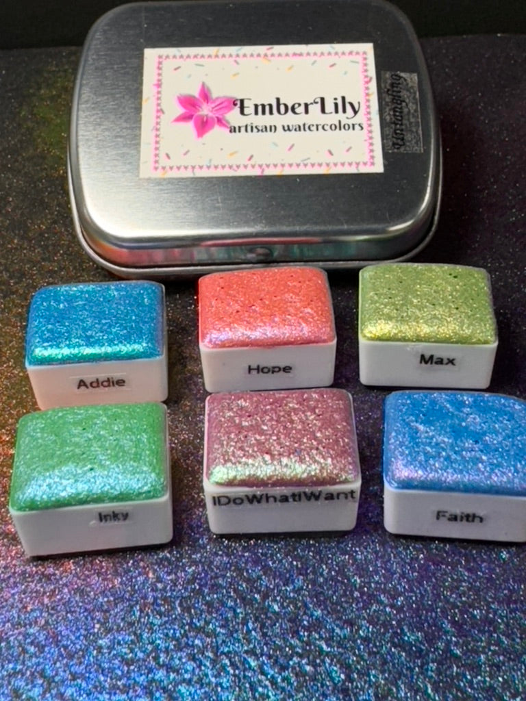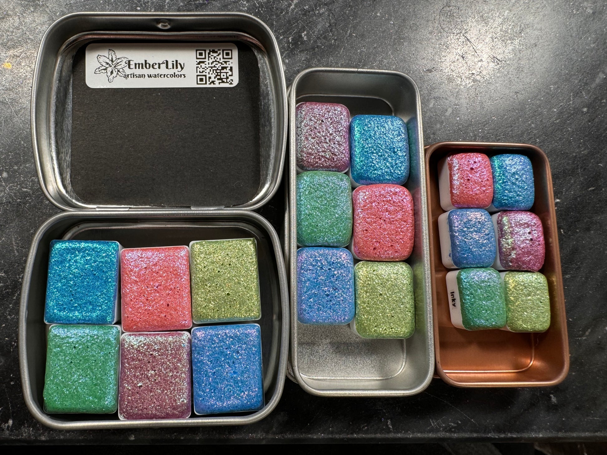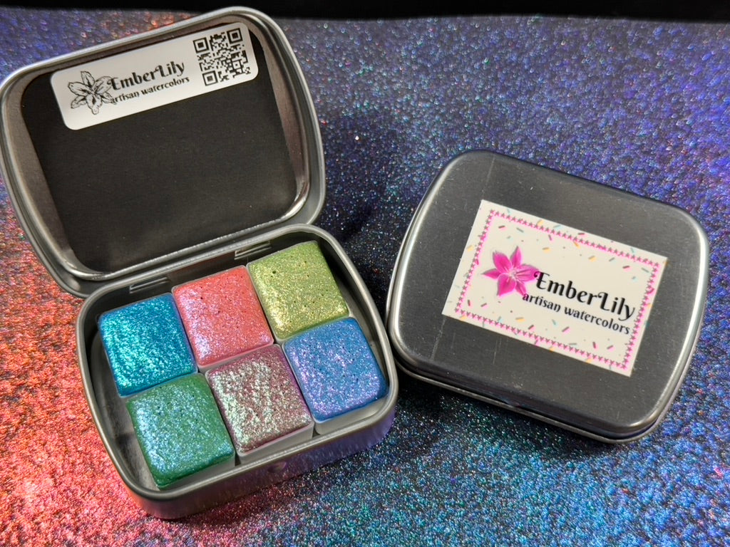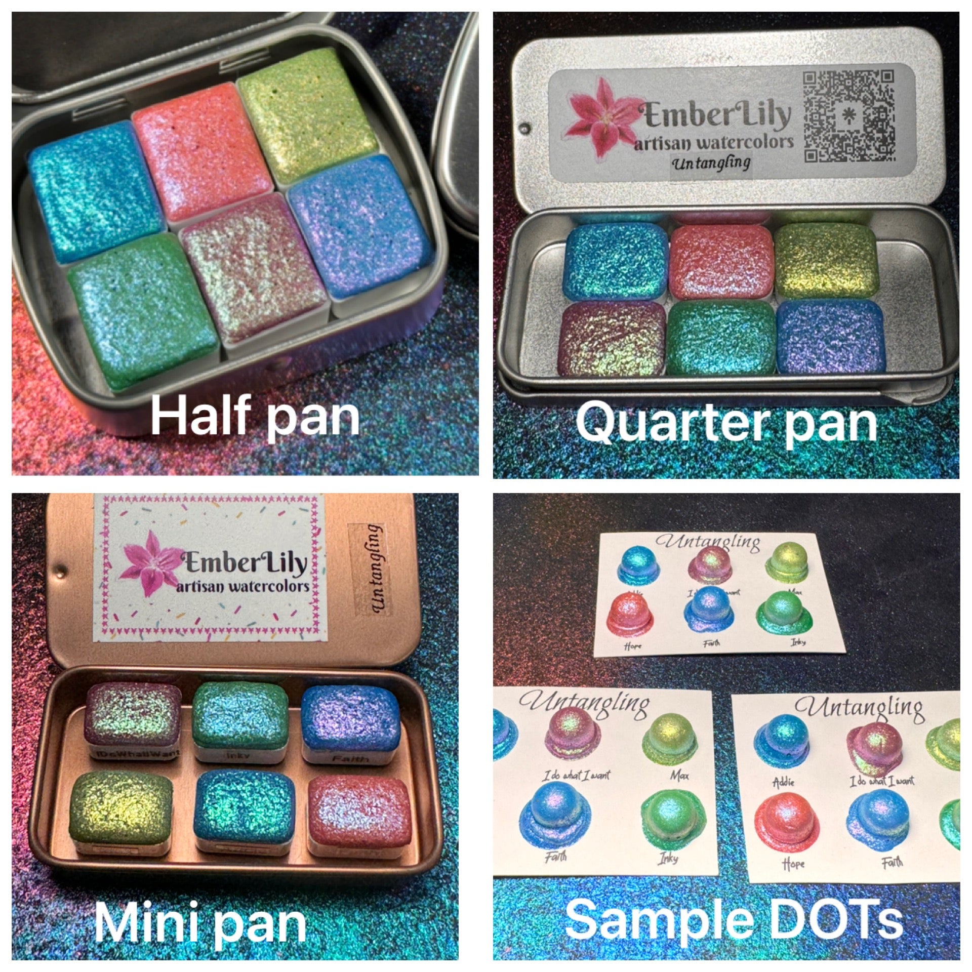 This set of handmade colorshift watercolors was made exclusively for Untangling Addies SSSG (Super Secret Subscribers Group!) Available at a special price in 4 different sizes but once they are gone, they are gone. Get your limited edition set while they are available.
