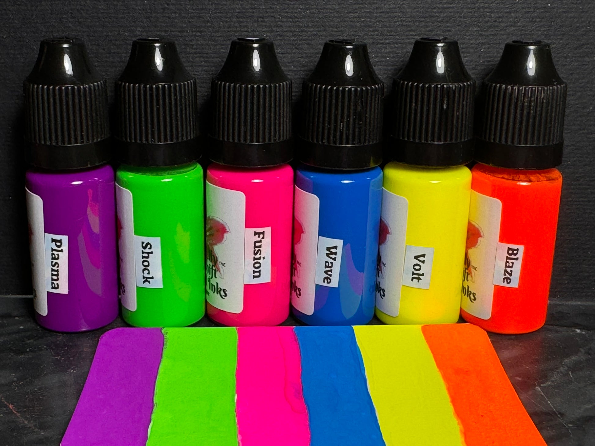 Valley Girl is a set of 80s inspired Gnarly Neon ALCOHOL INKS in a set of 6 vibrant neon alcohol art inks.
